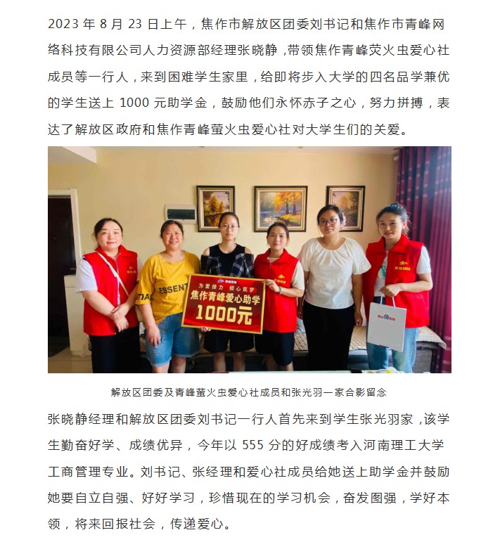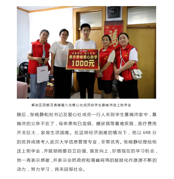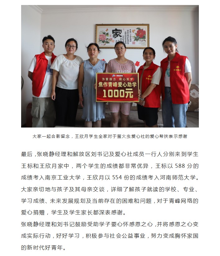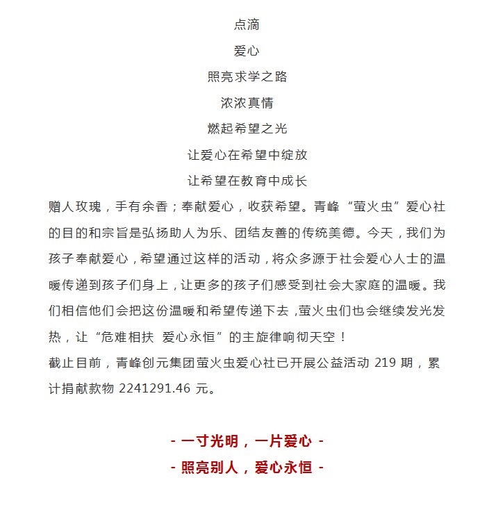 青峰助學 傾心筑夢--青峰創(chuàng)元集團螢火蟲愛心活動第219期