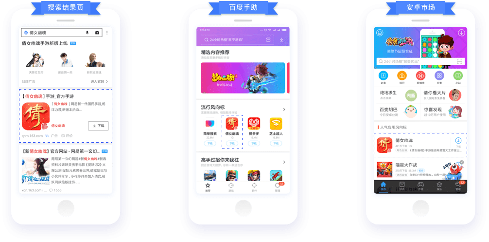 百通能在搜索結果頁直接推廣您的應用,并通過整合百度系應用商店、分發(fā)聯(lián)盟、信息流廣告,為您提供最優(yōu)質的一站式的APP分發(fā)服務