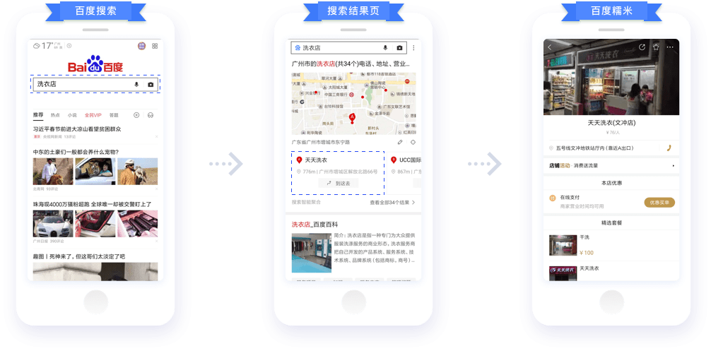 本地直通車通過整合移動搜索、百度糯米資源,可以將您的信息精準地推廣給周邊有相應需求的客戶,促使客戶以在線支付、到店付等方式完成交易