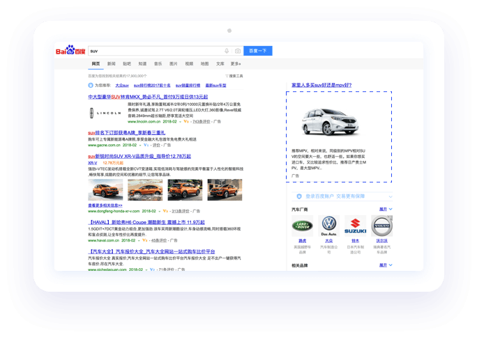 您可以在用戶興趣階段,通過在搜索結果頁右側強勢展現(xiàn)品牌廣告,增加品牌露出。