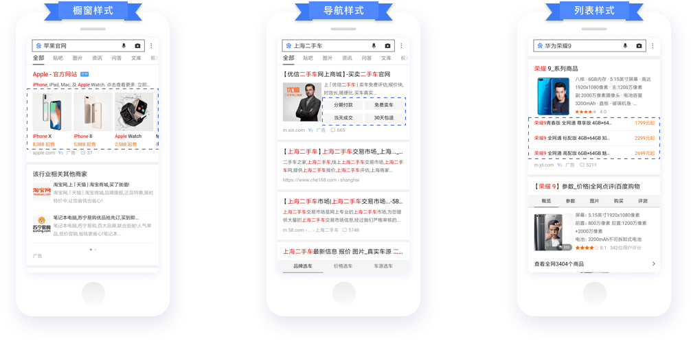您可以在用戶轉化階段,將您的產品和服務信息前置,以結構化圖文的樣式展示在搜索結果中,強勢促進品牌宣傳和銷售轉化;